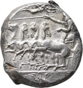Neben Arethusa begegnen uns auf sizilischen Münzen zahlreiche weitere Nymphen, die für die enge Verbindung zwischen Naturraum, Mythos und lokaler Identität stehen. Sie symbolisieren das Göttliche in der Natur, sind zugleich ihre Schutzgottheiten und werden so zu städtischen Repräsentantinnen.