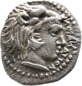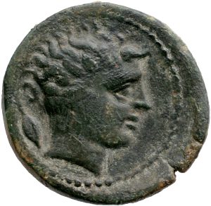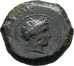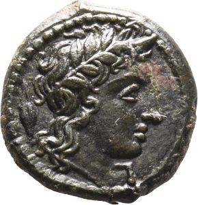 Münze 25 | gehörnter Kopf des jugendlichen Flussgottes Alkos, in Morgantina geprägt