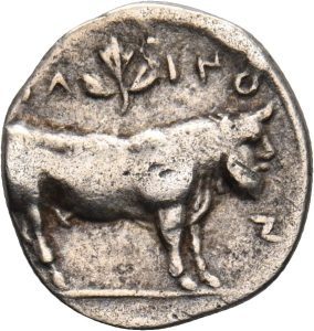 Münze 11 | Flussgott als Vorderteil eines menschengesichtigen Stieres, in Herbessos geprägt