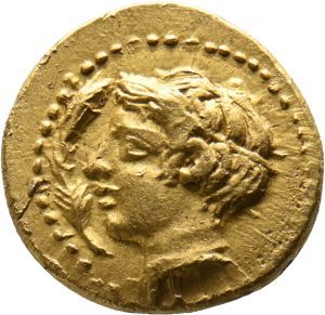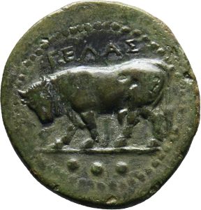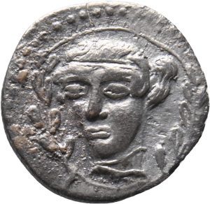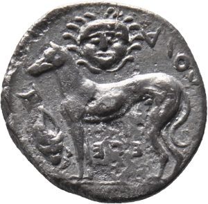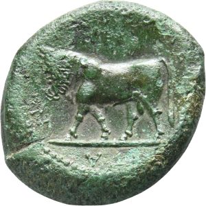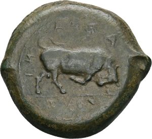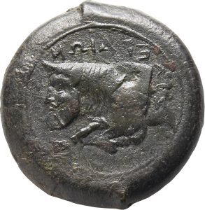 Münze 24 | gehörnter Kopf des jugendlichen Flussgottes Longanos, in Longane geprägt