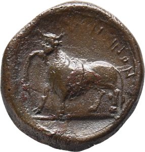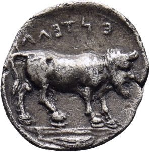 Münze 10 | Flussgott als menschengesichtiger Stier, in Entella geprägt