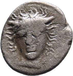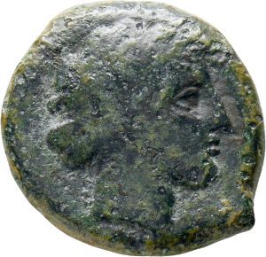 Münze 27 | gehörnter Kopf eines jugendlichen Flussgottes Akis im Dreiviertelprofil, in Ostsizilien geprägt