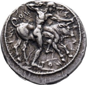 Münze 13 | Flussgott Selinus als menschengesichtiger Stier, in Selinus geprägt